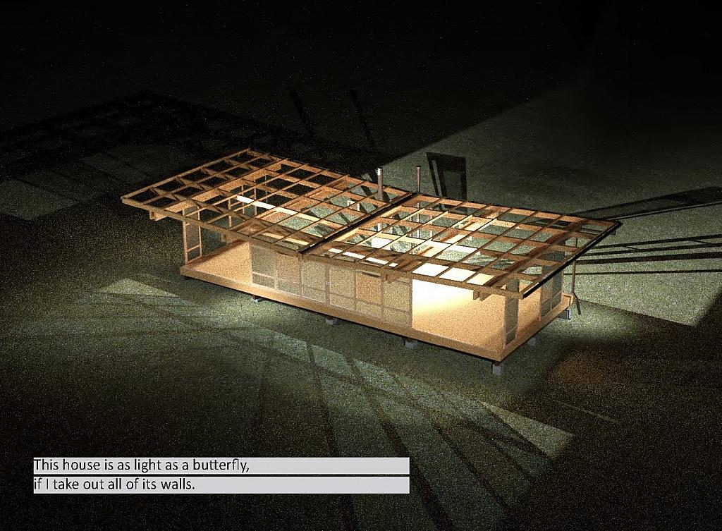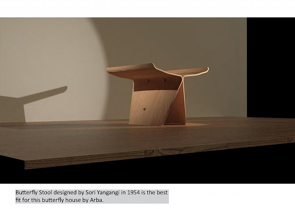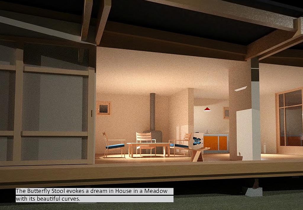Arba – AutoCAD 3D illustration: House in a meadow by Arba crossover with Butterfly Stool by Sori Yanagi